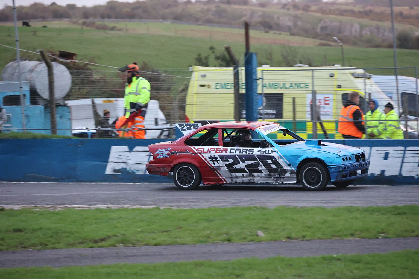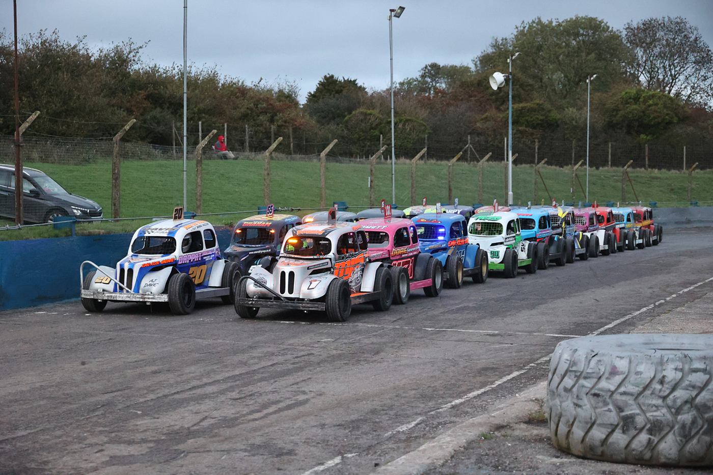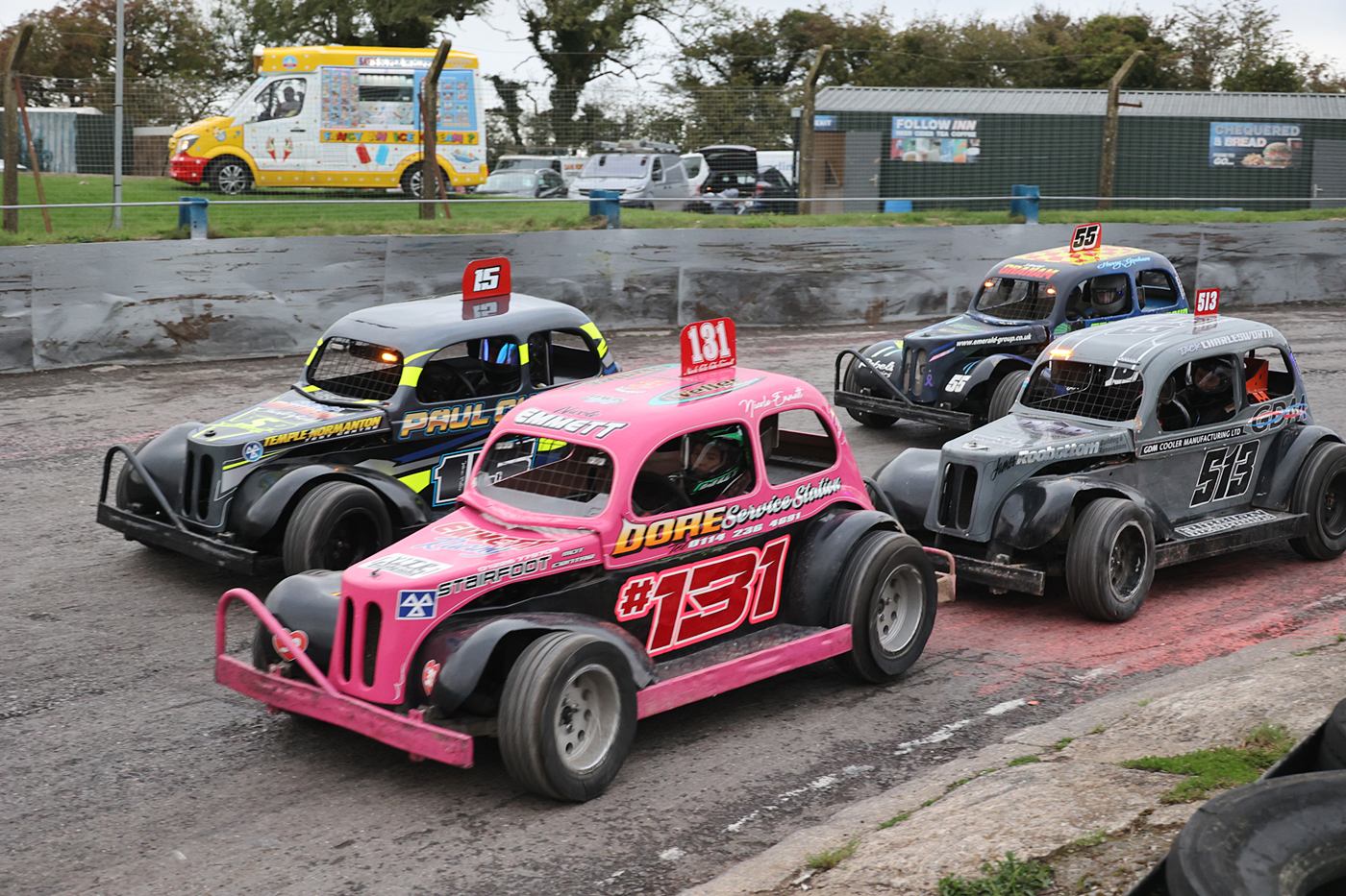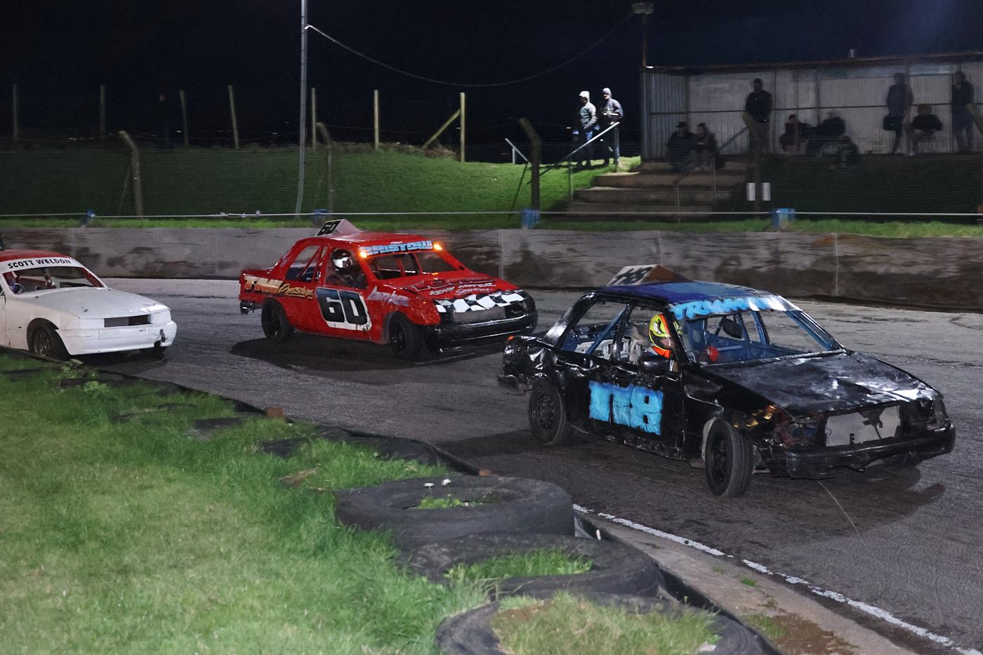 It was a dry afternoon for the P.R.I. Banger World Championship. The top 5 in each last Chance Qualifier Heats plus the Entertainer joined the seeded drivers, in the World Final, although there were less cars than last year there was still plenty of action, and there was a lot of driver’s taking home some very bent motors. In the Saloon Stock Cars 136 Harry Bruce came down from Scotland.